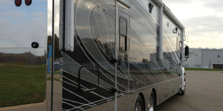 John was looking to give his motorcoach a little flair. He was initially thinking about vinyl decals and contacted his local shop. In searching for a look that fit his vision, his shop brought up paint schemes from No Coast Design. Once he contacted Thomas, his decision was made.